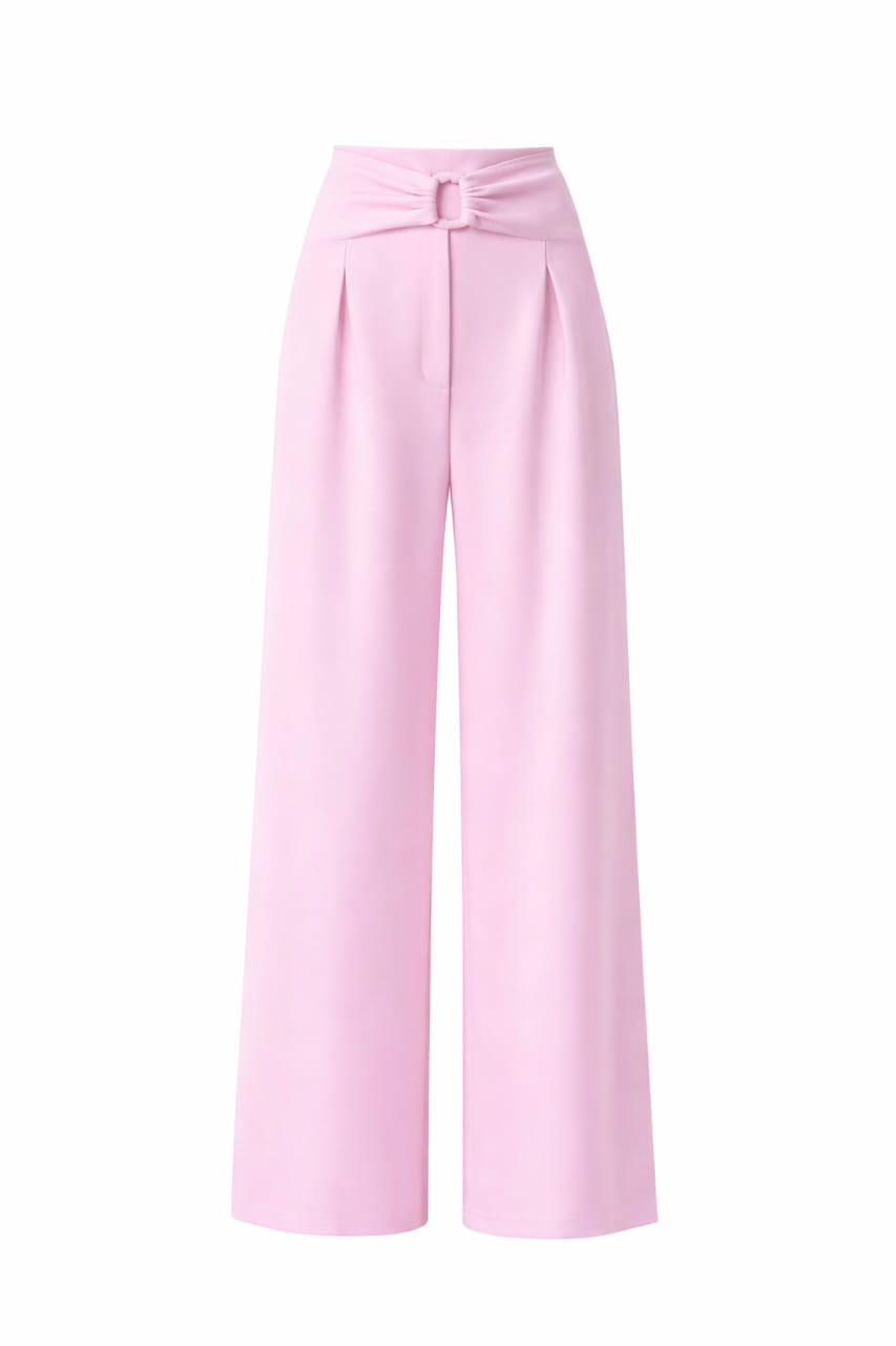 Add a refined and feminine touch to your wardrobe with these elegant crepe fabric trousers. Designed in a soft pastel pink shade, these high-waist wide-leg trousers feature a flattering front pleat detail and a stylish waistband accent that enhances the silhouette. The premium crepe fabric offers a smooth drape, lightweight feel, and all-day comfort, making it perfect for office wear, formal meetings, and smart casual outings.